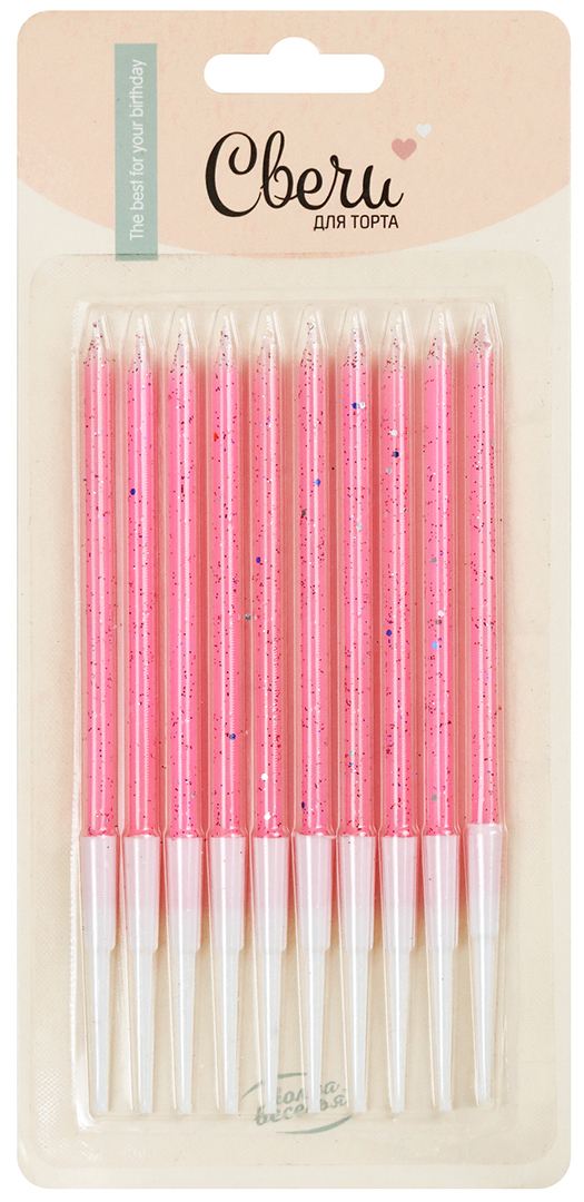 Свечи Розовый, с блестками, 0,4*10 см, 10 шт. с держат.