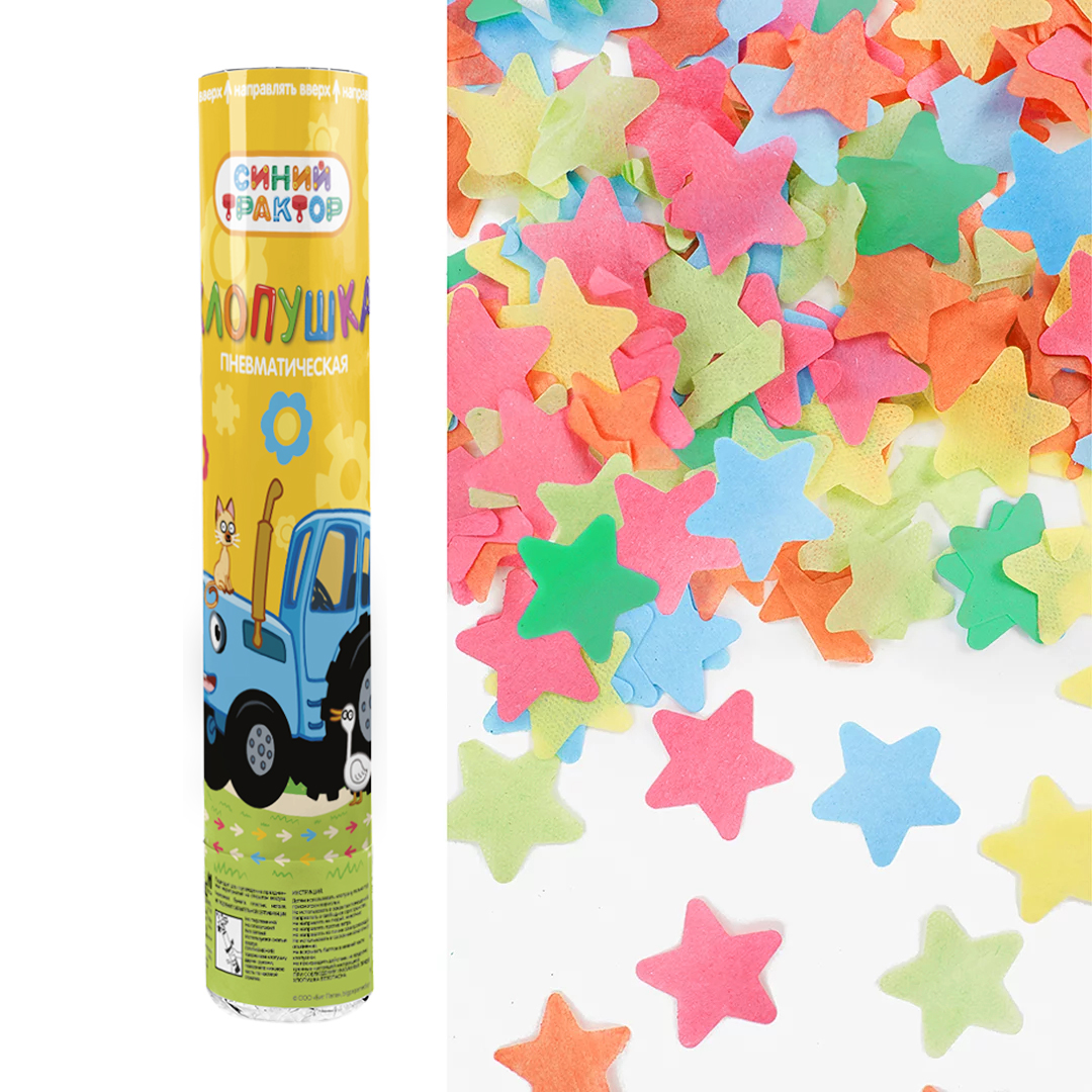 Пневмохлопушка (12/30 см), Синий трактор, Звезды тишью, Ассорти, 1 шт.