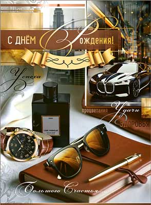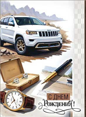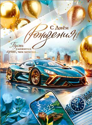 Открытка А4 формат "С Днем Рождения!" УФ-лак