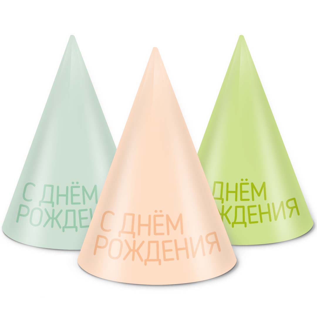 Колпаки, Классика, С Днем Рождения!, Ассорти, 16 см, 6 шт. в упак.