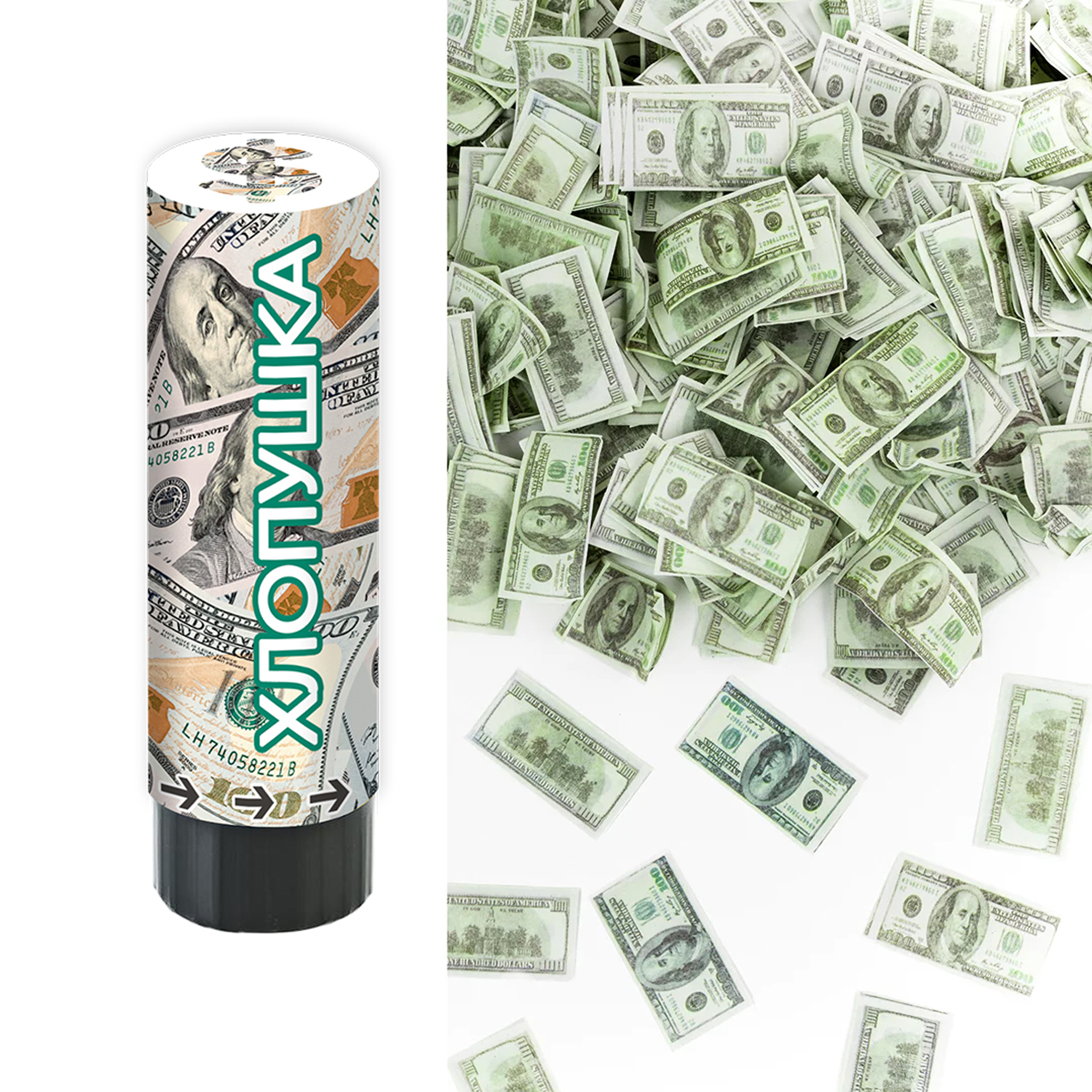 Хлопушка пружинная (6/15 см), Деньги, Доллары, 1 шт.