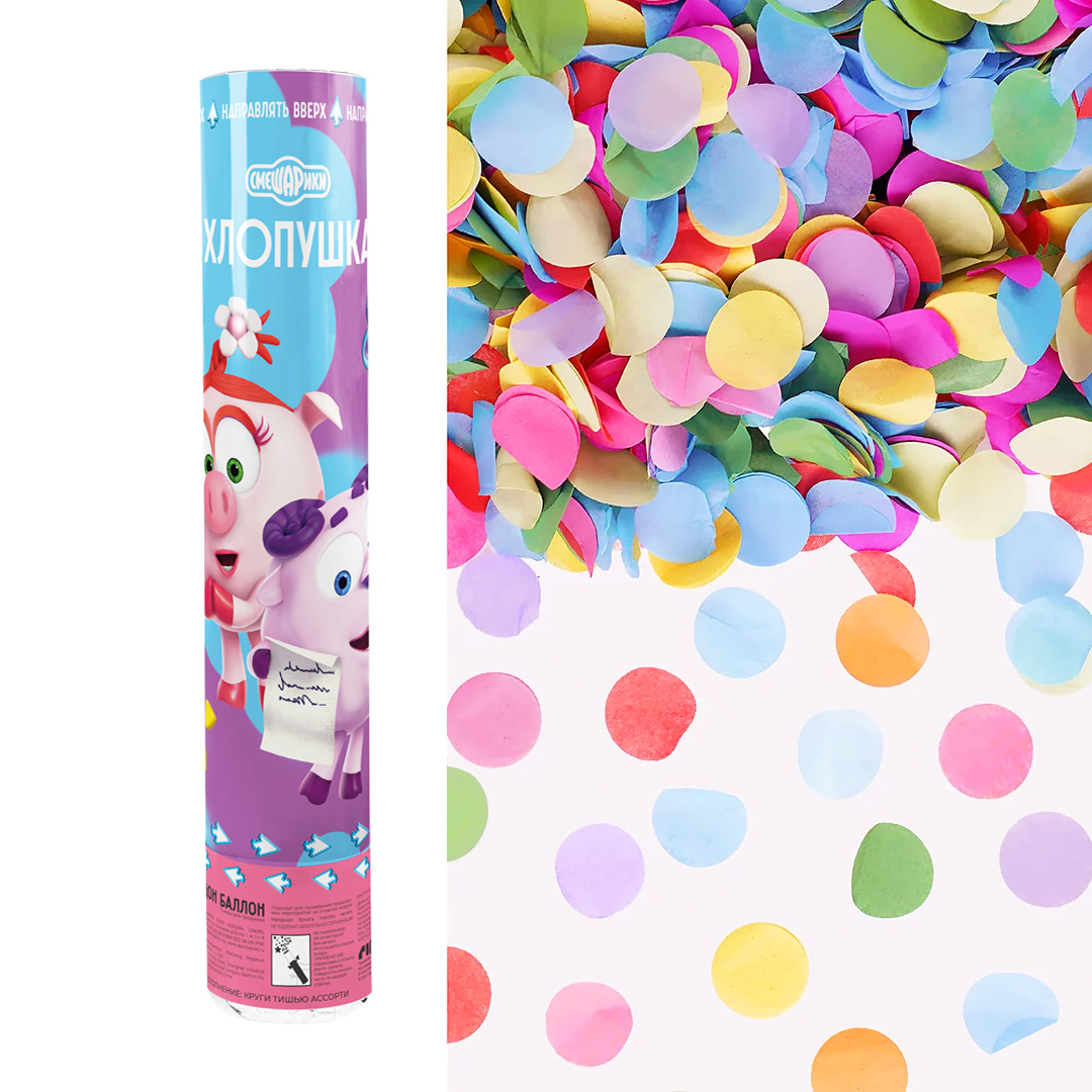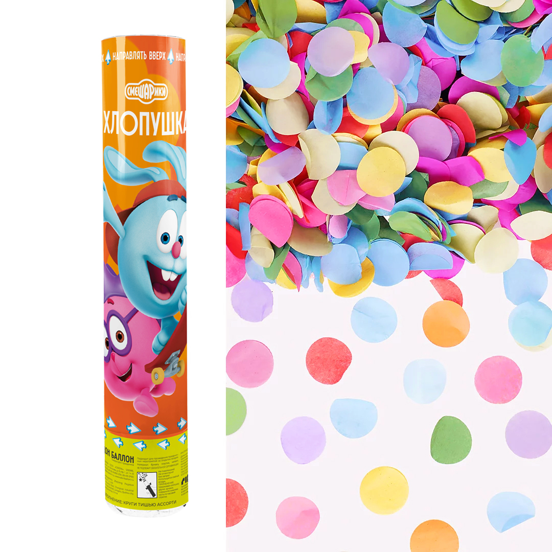 Пневмохлопушка (12/30 см), Смешарики, Крош и Ежик, Круги тишью, Ассорти, 1 шт.