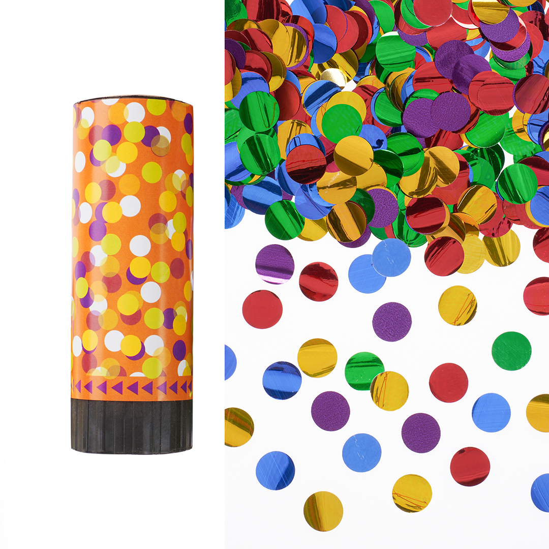 Хлопушка пружинная (4/10 см), Яркое конфетти, Круги фольга, Ассорти, 1 шт.