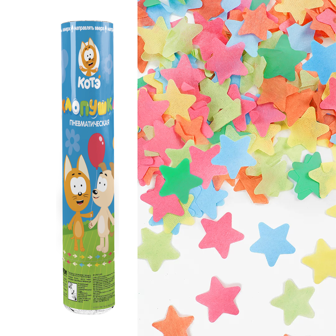 Пневмохлопушка (12/30 см), Котенок Котэ, Звезды тишью, Ассорти, 1 шт.