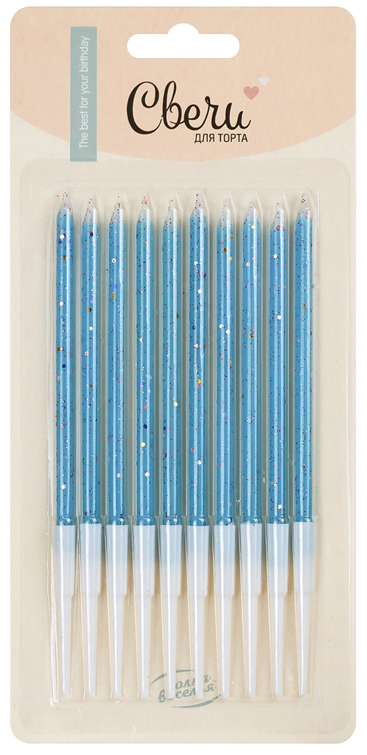 Свечи Голубой, с блестками, 0,4*10 см, 10 шт. с держат.