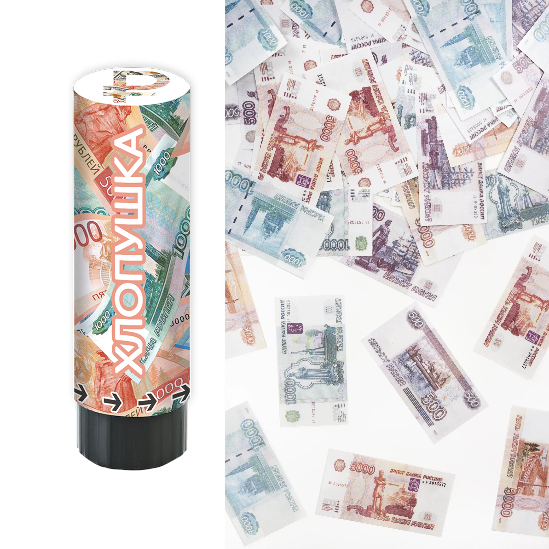 Хлопушка пружинная (6/15 см), Деньги, Рубли, 1 шт.