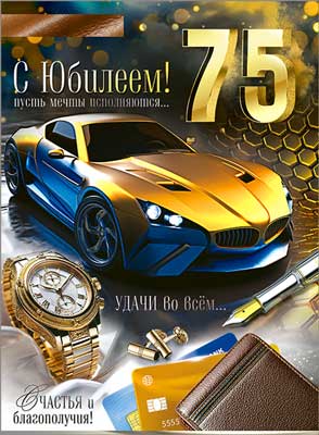 Открытка А4 формат "С Юбилеем! 75 лет" УФ-лак