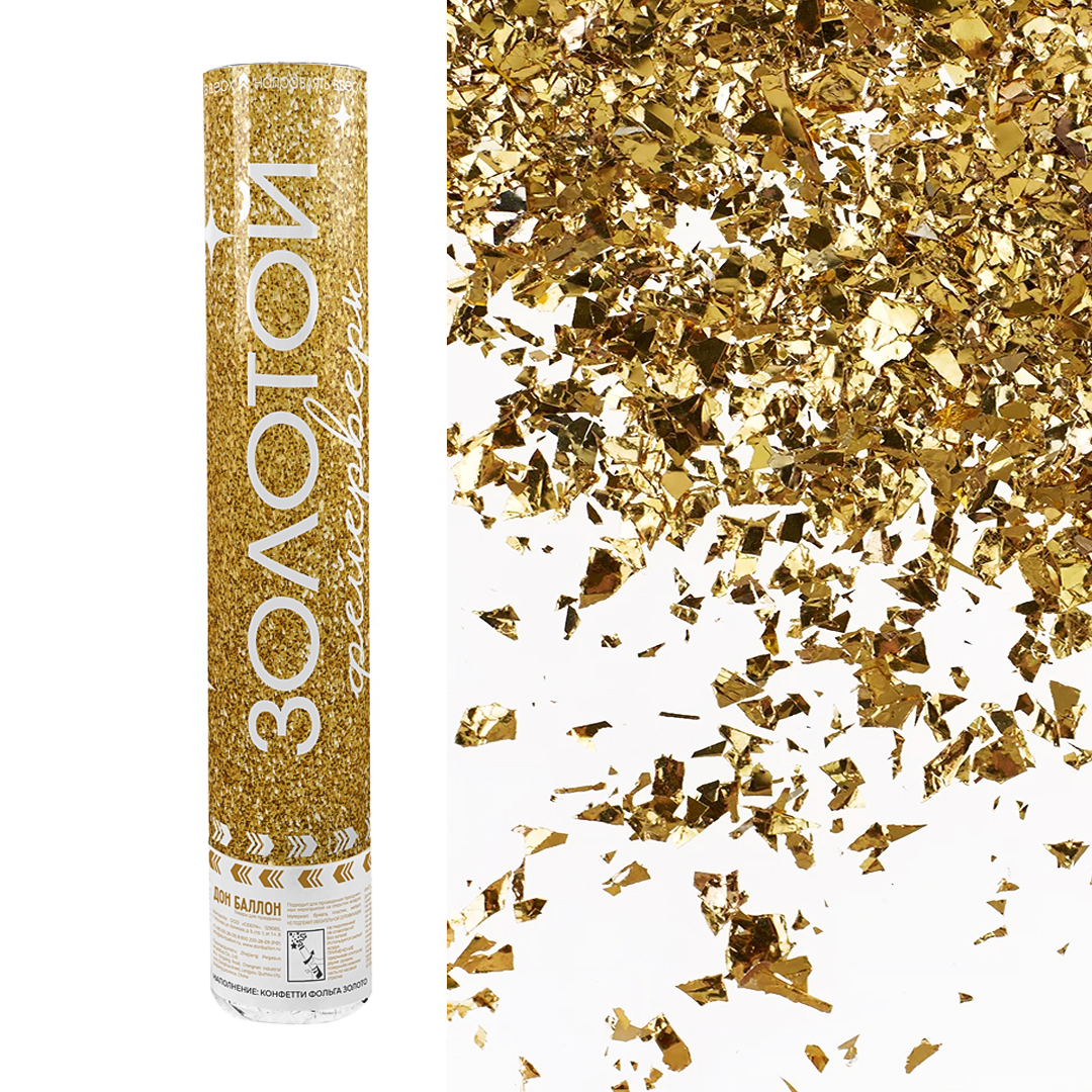 Пневмохлопушка (12/30 см), Искрящийся фейерверк, Конфетти дробленые, Золото, 1 шт.