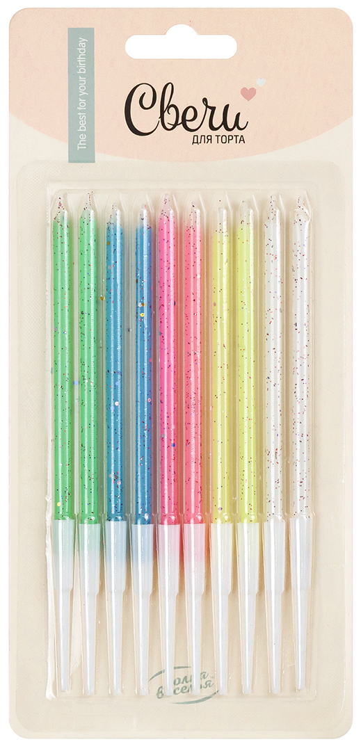 Свечи Яркие искры, Ассорти, с блестками, 0,4*10 см, 10 шт. с держат.