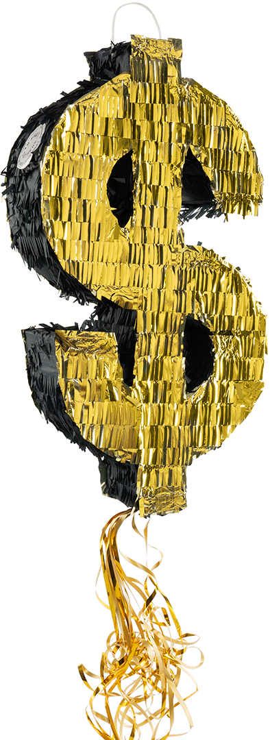 Пиньята Знак Доллара, Золото, Металлик, 47*25*9 см, 1 шт. в упак.