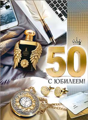 Открытка А4 формат "С Юбилеем! 50 лет" УФ-лак
