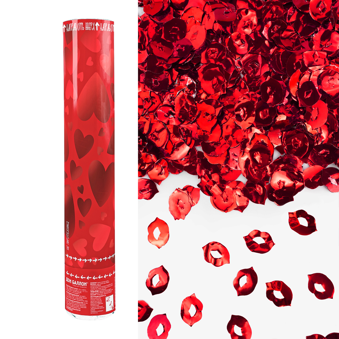Пневмохлопушка (12/30 см), Люблю, Поцелуи фольга, Красный, 1 шт.