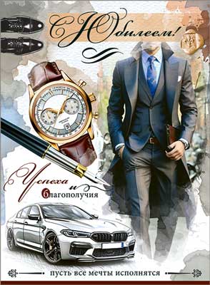 Открытка А4 формат "С Юбилеем!" УФ-лак